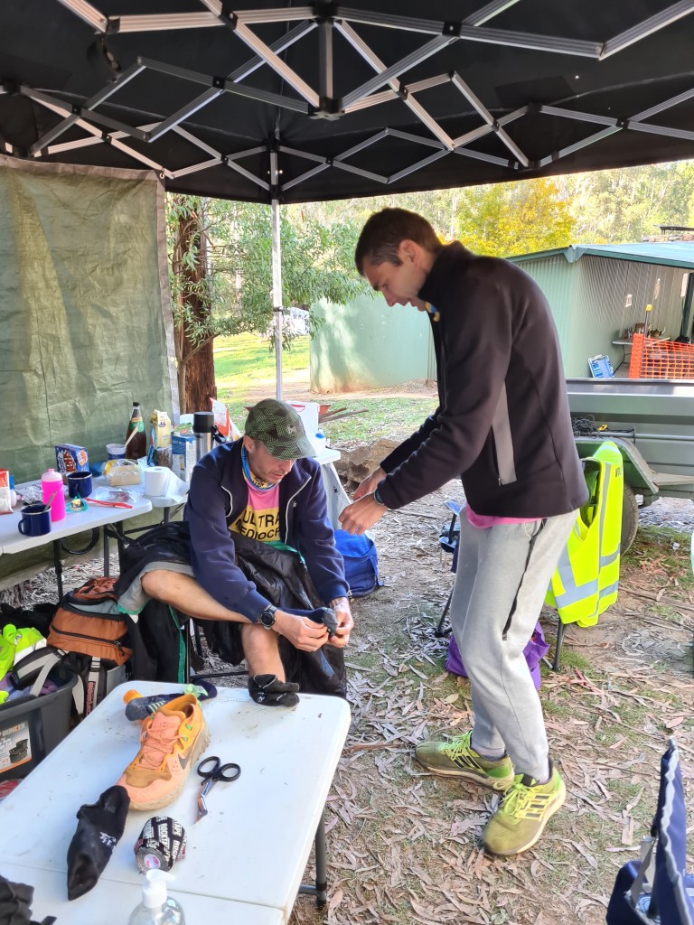 As I saw the many smiles plastered on runners faces around lap one it warmed my heart and brought joy into my soul. It reminded me that it is wonderful to be alive, to be able to move my body freely and share an adventure with like minded people. During the first lap Chris Wilder and Matt Griggs made a toilet stop along one stick road in plain view of the other runners, Matt quoted several days later “mates that pee together run to the end together”, which turned into a somewhat comical comradery as Chris and Matt where the last two runners of the GUMBY.