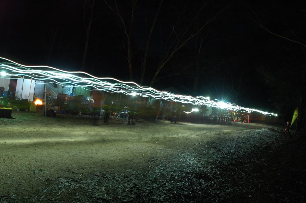 Headtorches are scattered through the campsite and a flood light lights up the hut where runners line up for the final registration.