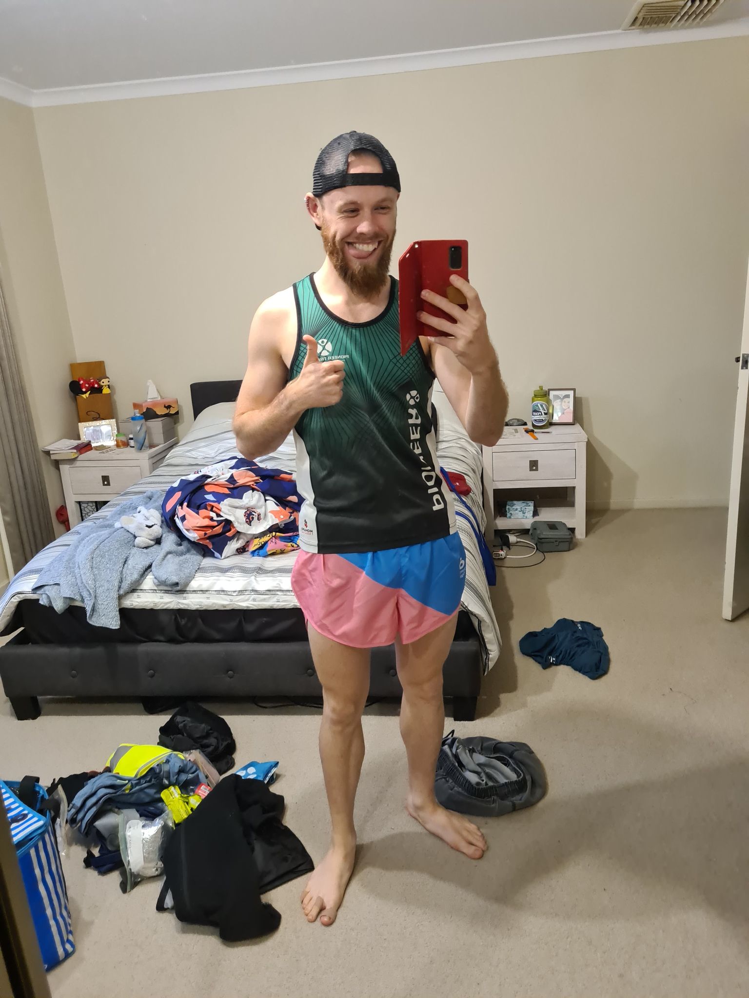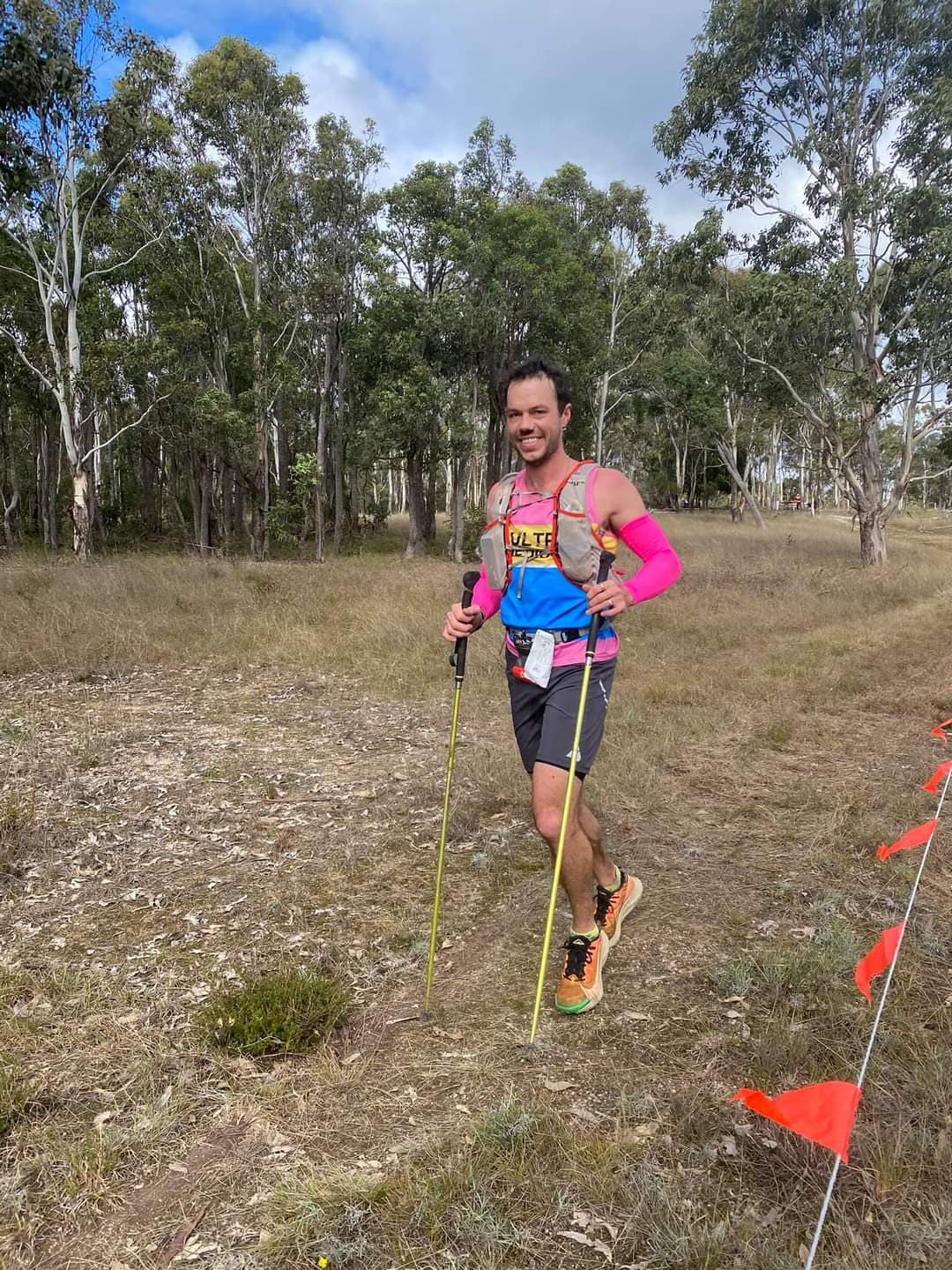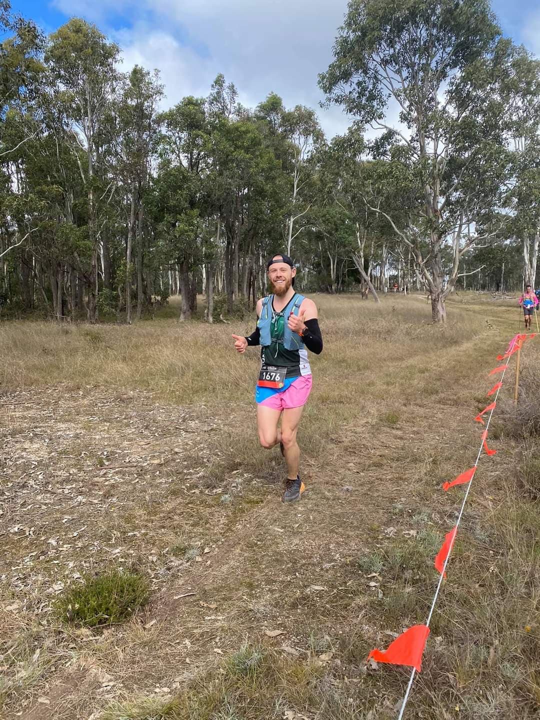 I need to note here that my wardrobe selection for the day was magnificent, highlight pink and blue races shorts which stood out like a sore thumb. These magnificent shorts are colours of the Ultra Mediocre Runners of Canberra (UMRoC), Chris had unknowingly worn the UMRoC race singlet with bright pink arm warmers and it looked like together we had a matching pair. I digress.