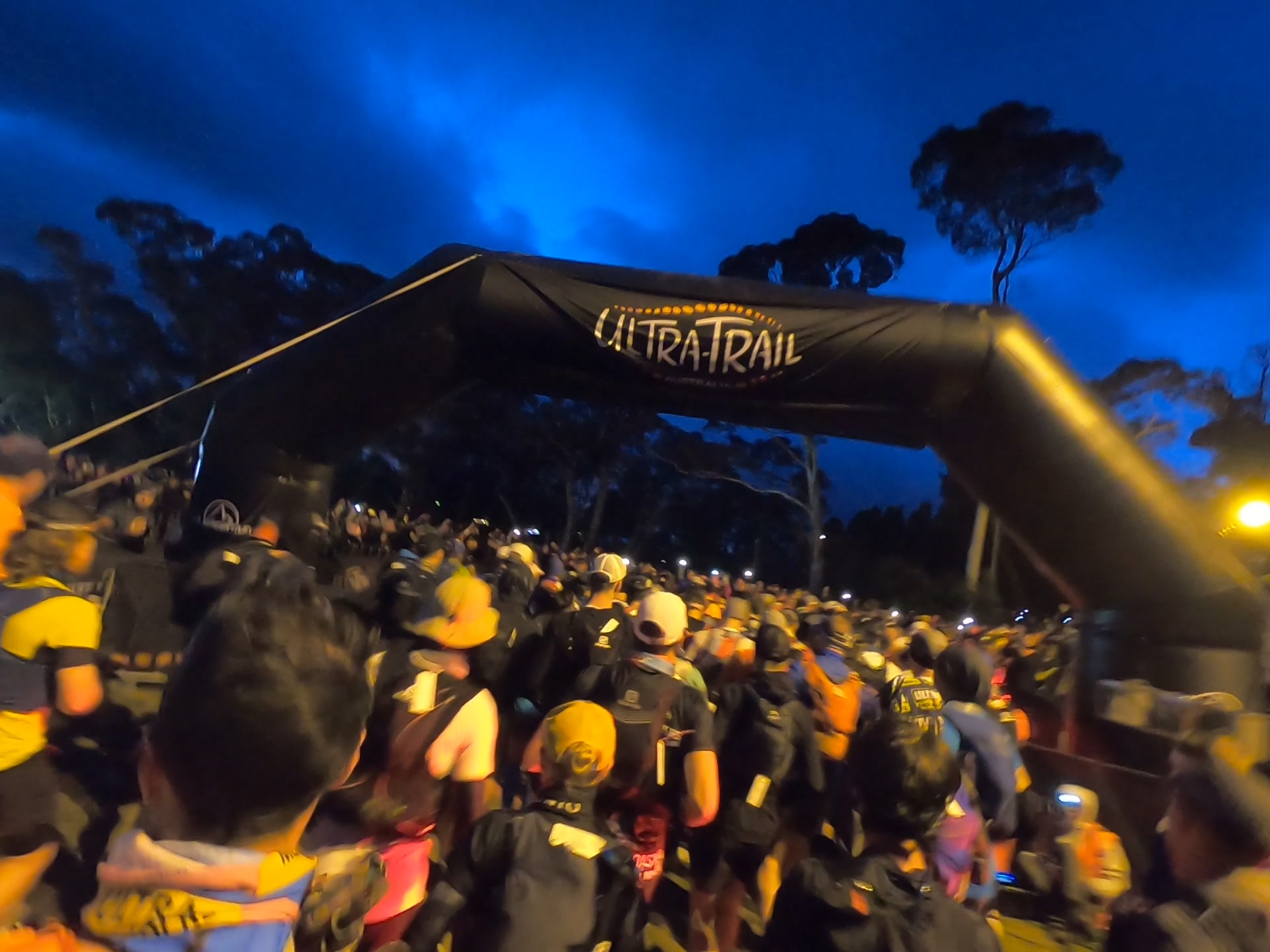 (the crowd shouts in unison)..3,2,1!!!!. Here it goes, it is underway. The Ultra Trail Australia 2021”.