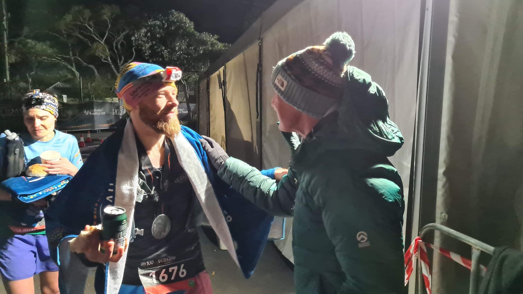Checkpoint 4 has the highest dropout rate, which is no surprise as it is the most comfortable checkpoint with warm drinks and a break from the freezing temperatures. I entered Checkpoint 4, grabbed my drop bag and went looking for a first aid officer because my running pack was rubbing against my right shoulder causing it to chafe. The cheerful first aid officer taped up my shoulder and then I joined Chris with his family. I restocked my spring energy gels and tailwind, ate more watermelon, banana and potato chips and pulled myself up ready to embrace the cold winds awaiting me outside.
